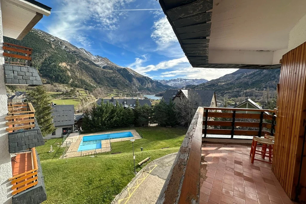 Precioso y amplio apartamento en Sallent de Gállego, con vistas al monte Pacino. Muy luminoso y con piscina comunitaria para disfrutar en los meses de verano. Dispone de: Salón con cocina independiente – 3 dormitorios – 5 camas – 2 baños – 3 plantas Plaza de garaje con espacio para