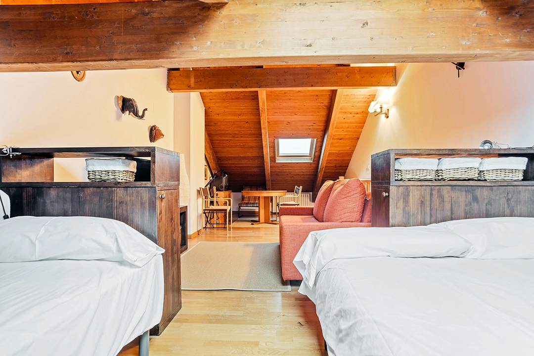 En la última planta, abuhardillada, encontrarás el tercer dormitorio con 1 cama doble y 1 cama individual.