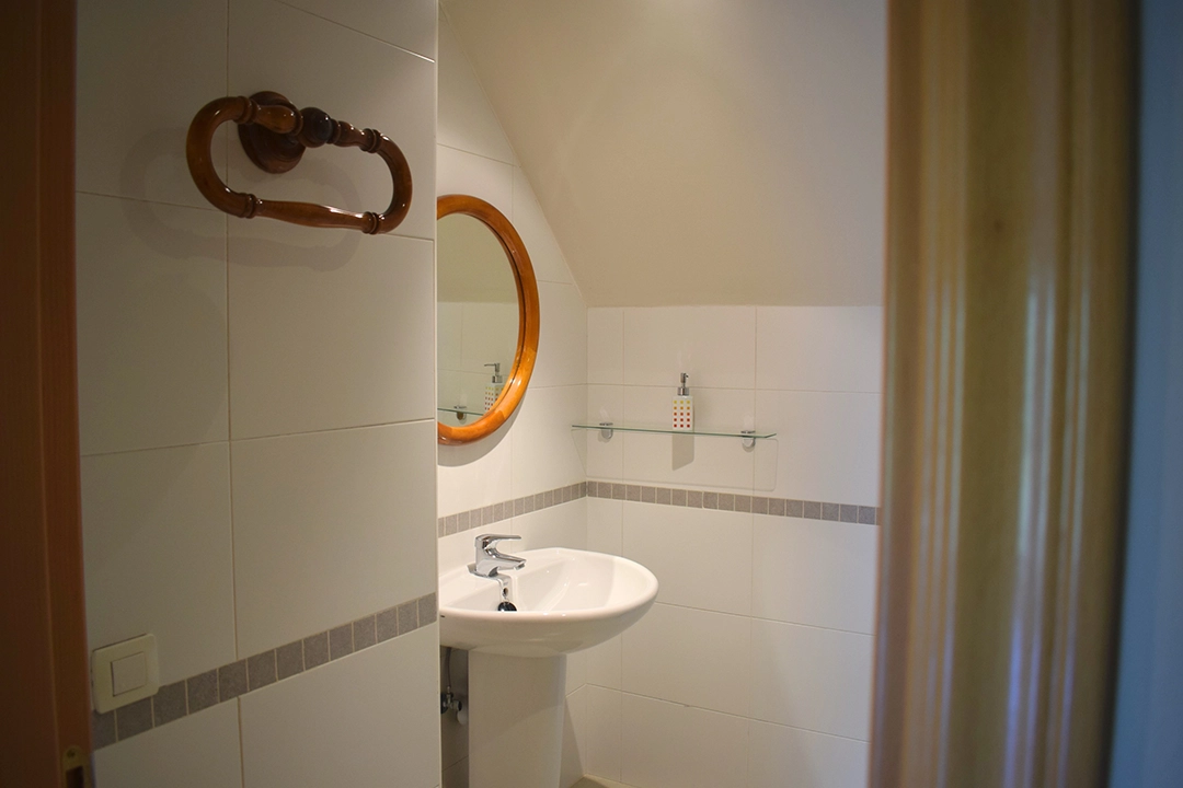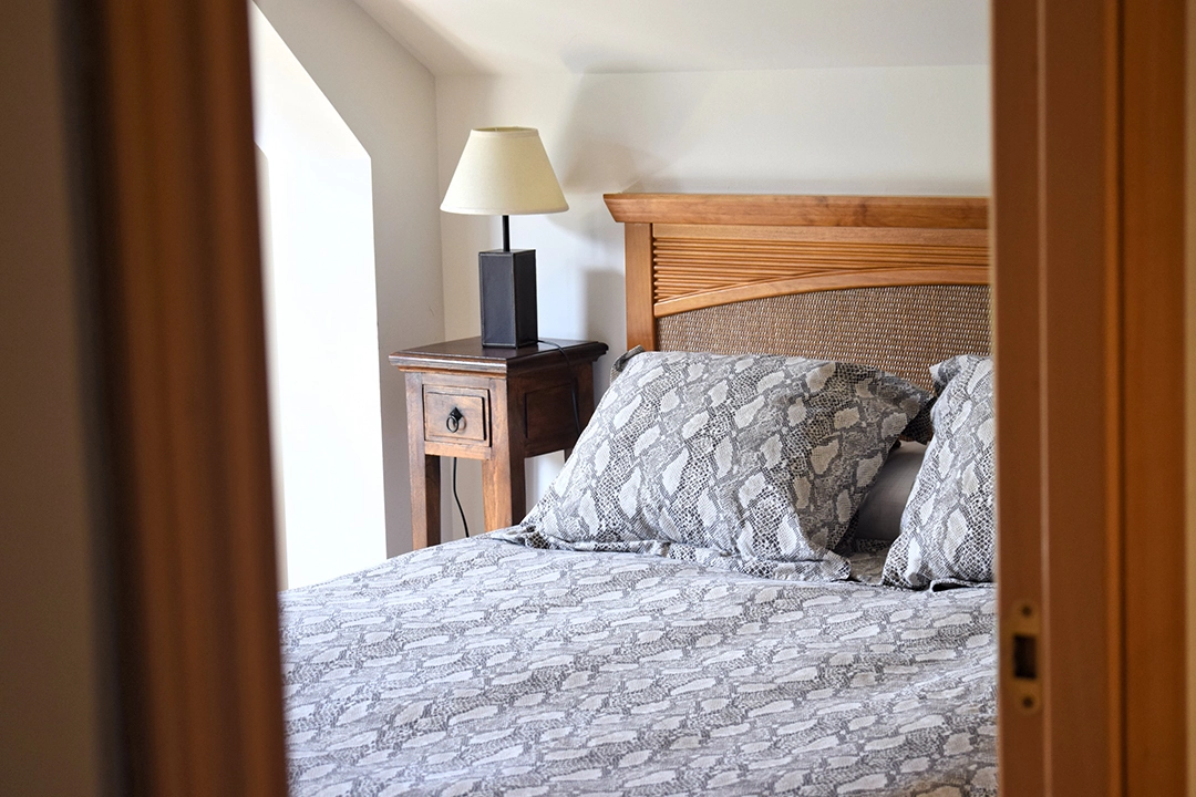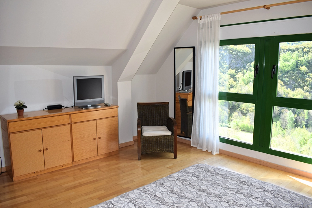 Buhardilla: Dormitorio abuhardillado con cama de 150 y un baño.