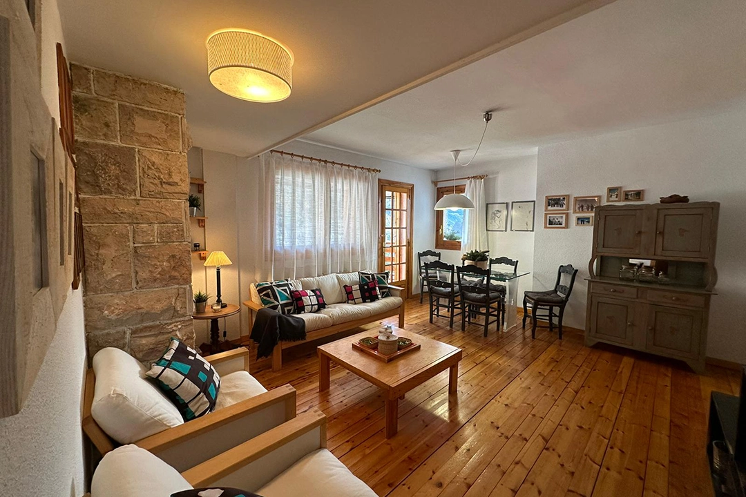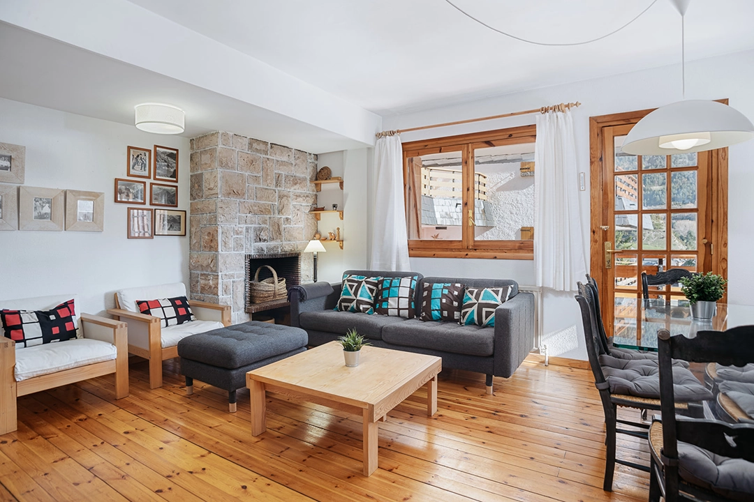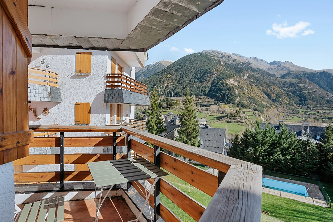 Precioso y amplio apartamento en Sallent de Gállego, con vistas al monte Pacino. Muy luminoso y con piscina comunitaria para disfrutar en los meses de verano. Dispone de: Salón con cocina independiente – 3 dormitorios – 5 camas – 2 baños – 3 plantas Plaza de garaje con espacio para guardar tus esquís Un alojamiento ideal para hasta 6 personas, perfecto para familias o grupos de amigos que quieran descubrir la naturaleza del Valle de Tena y estar a pocos minutos de las pistas de esquí de Formigal.