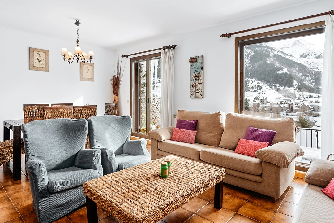 – Amplio salón con acceso a una enorme terraza desde la que podrás disfrutar de una privilegiadas vistas al pueblo de Sallent y al embalse de Lanuza.