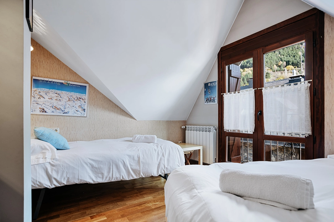 Acogedora casa de pueblo en el centro de Sallent de Gállego, ideal para familias numerosas o grupos de amigos. A solo 5 minutos en coche de las pistas de Formigal, combina comodidad y encanto pirenaico. Dispone de: Amplio salón y cocina independiente – 2 baños completos – 1 dormitorio doble con cama de matrimonio – 2 dormitorios dobles con dos camas individuales – 1 dormitorio individual La casa se organiza en varias plantas: en la principal se encuentra el salón y la cocina, perfectos para compartir momentos juntos, mientras que los dormitorios se distribuyen en los pisos superiores, ofreciendo privacidad y descanso tras un día de montaña.
